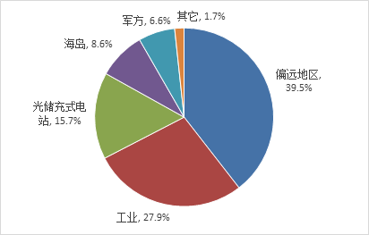 根據(jù)CNESA全球儲能項目庫的不完全統(tǒng)計,截至2019年底,中國已投運的、與分布式光伏配套建設(shè)的儲能項目累計裝機規(guī)模為175.0MW,占全部光儲項目總規(guī)模的21.9%。分布式光儲項目的應(yīng)用場景相對比較多樣,主要包括偏遠地區(qū)光儲、工業(yè)光儲、光儲充式電站、海島光儲和軍方光儲等。其中,偏遠地區(qū)光儲項目的累計投運規(guī)模最大,為69.1MW,占比達到39.5%,比去年同期下降近14個百分點,而工業(yè)光儲項目的占比則比去年同期提升了近8個百分點,利用光儲模式降低電費支出的工業(yè)用戶越來越多。
