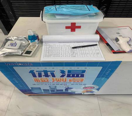 有序的排隊測量體溫、登記 | ![]() 排隊打卡 | ![]() 體溫測量區(qū)域 |