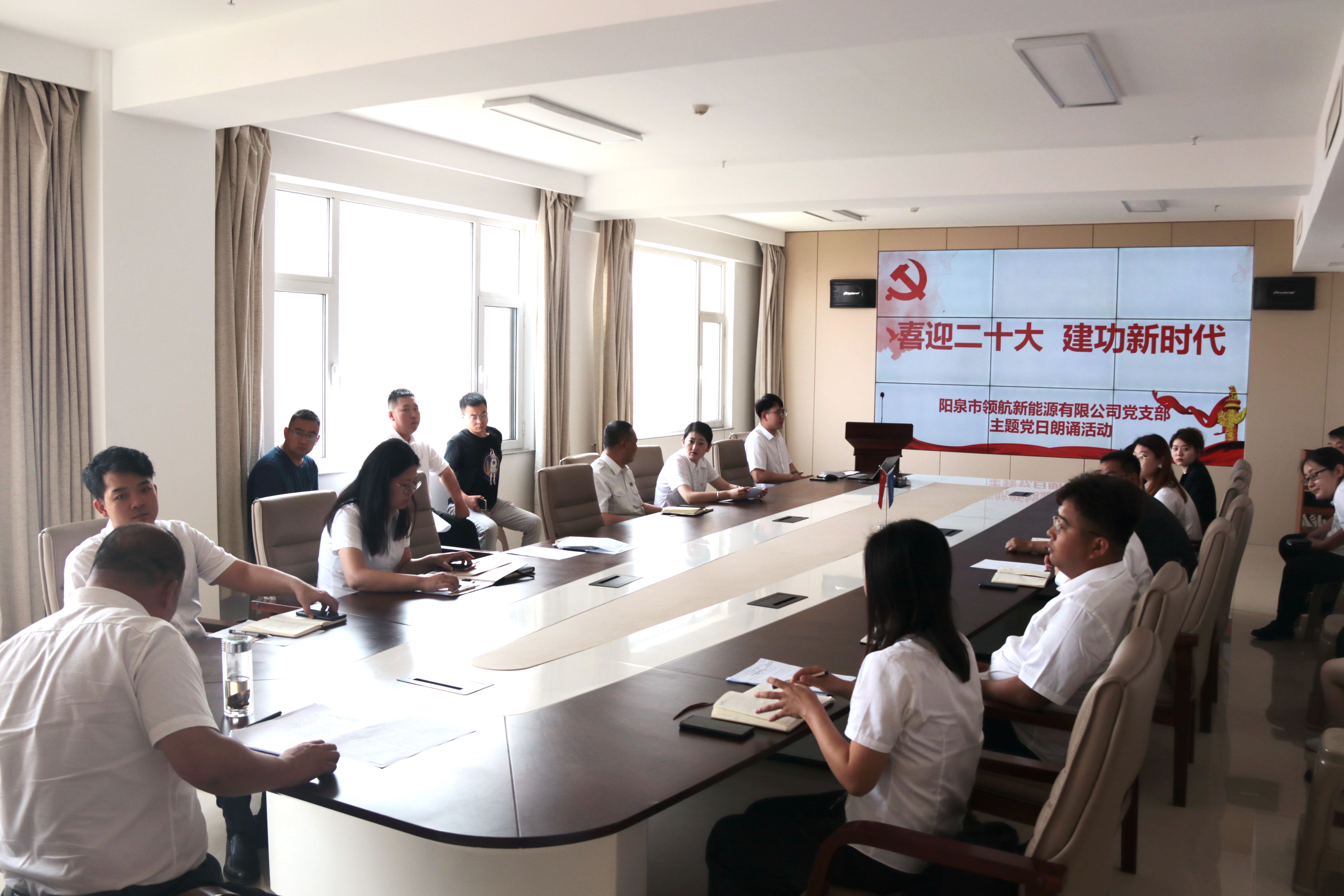 6月9日上午,陽(yáng)泉市領(lǐng)航新能源有限公司黨支部開展“喜迎二十大 建功新時(shí)代”主題黨日朗誦活動(dòng),進(jìn)一步激發(fā)廣大黨員不忘初心使命、永葆政治本色、為黨和人民事業(yè)增添正能量而繼續(xù)奮斗的豪邁熱情。